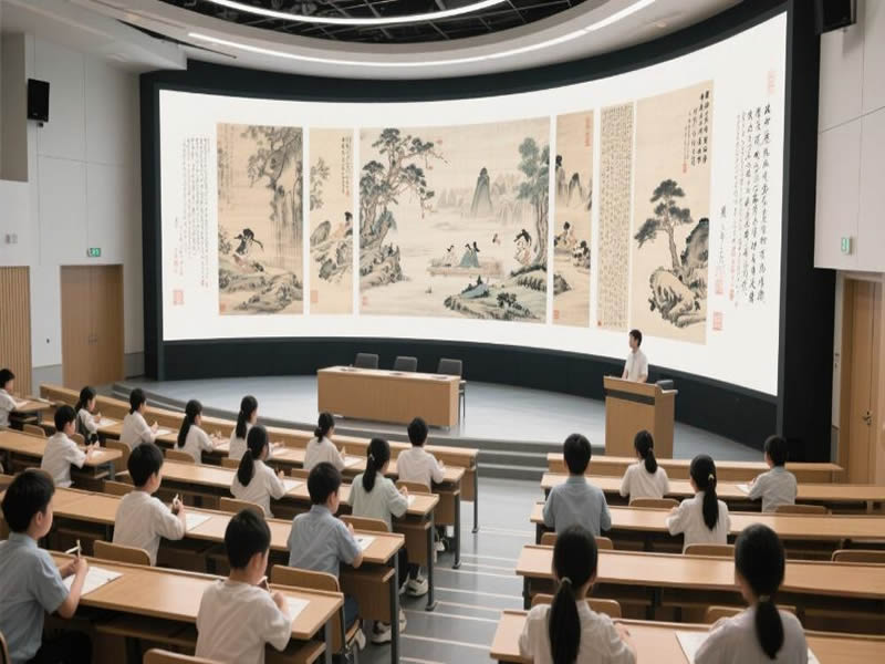 站在教室門口,你突然懷疑自己走錯了片場——四周的弧形墻面正在上演"星際穿越",腳下的地板流動著DNA雙螺旋,抬頭看見老教授正把牛頓定律像捏橡皮泥一樣在空中擺弄。別急著退出去看門牌,這就是你們班今天的"科技魔法課堂",而那根神奇的"魔法棒",正是最新入駐教室的弧形激光投影系統。